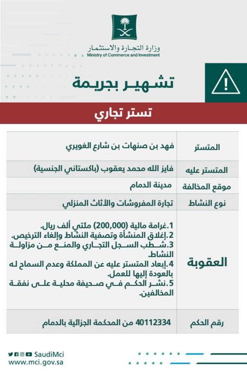 إعلان تشهير رسمي التجارة تشه ر بمواطن ومقيم أ دينا في