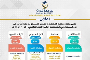 بدء التسجيل في عدد من الدبلومات العالية والمتوسط بجامعة نجران