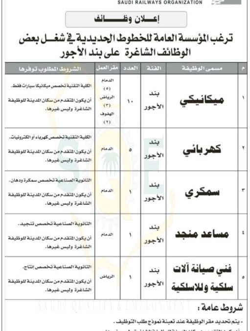 الخطوط الحديدية تعلن توفر وظائف في الدمام و الرياض وظيفة كوم