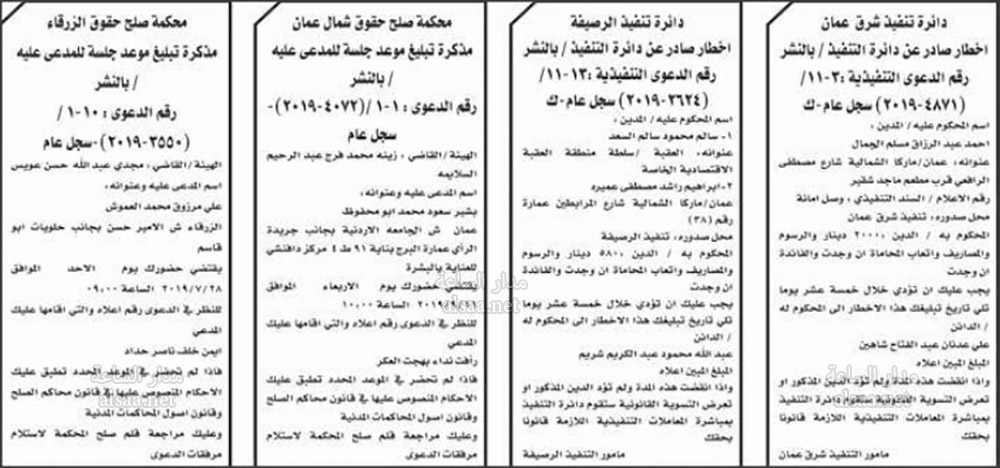 إخطارات عن دوائر التنفيذ ومذكرات تبليغ جلسات أسماء