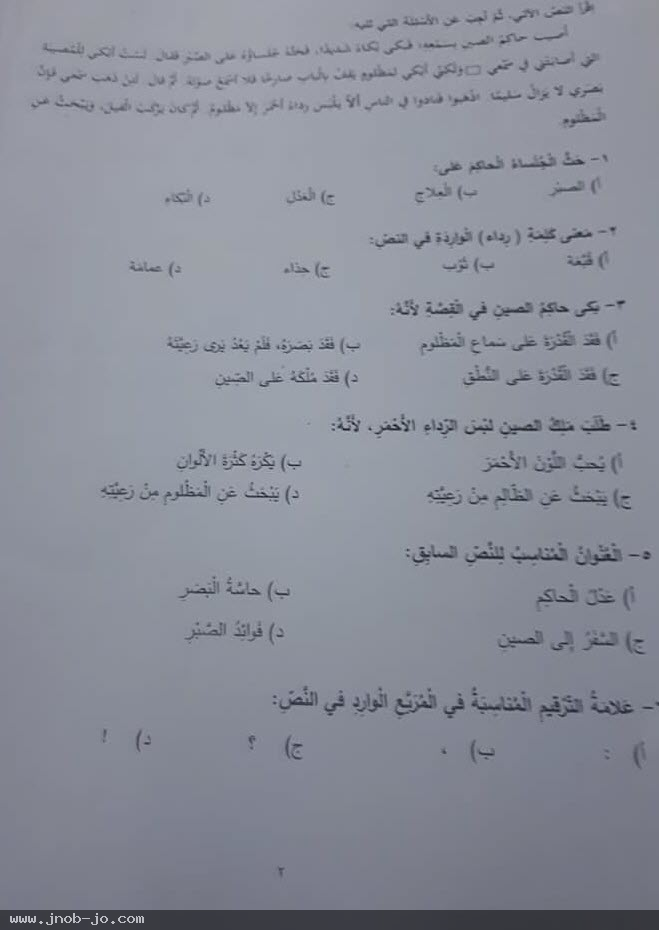 نموذج الاختبار الوطني لضبط نوعية التعليم لمادة اللغة العربية الصف